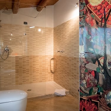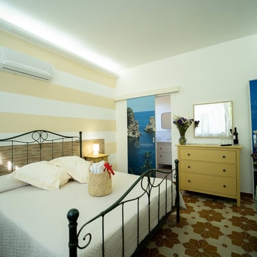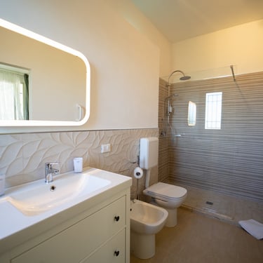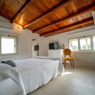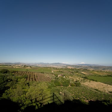 La nostra suite Guttuso offre un'esperienza di lusso con un ambiente spazioso, arredamento elegante e una vista mozzafiato sulla campagna siciliana.